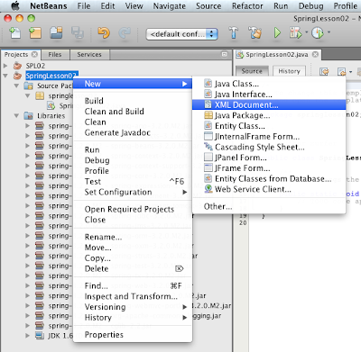 Já sabemos que ao usar os objetos e classes da linha 19, o NB fará a sugestão de importar as libs necessárias. Clique na lâmpada que aparece no nº da linha e escolha a sugestão de importar as 2 libs do spring org.springframework.context.ApplicationContext e org.springframework.context.support.ClassPathXmlApplicationContext